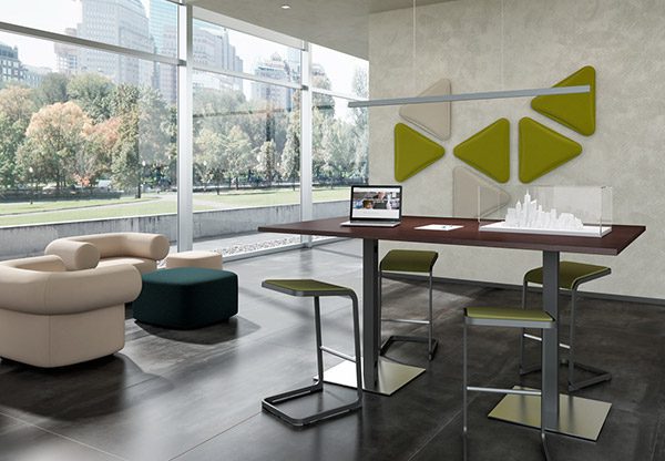 Der Stehtisch „Greko“ – umbaubar zu einem multimedialen Besprechungstisch – wurde entwickelt, um eine bessere Zusammenarbeit zwischen den Teilnehmern in Ihren informellen Besprechungen, Brainstorming-Sitzungen oder Workshops in kleinen Gruppen zu ermöglichen.