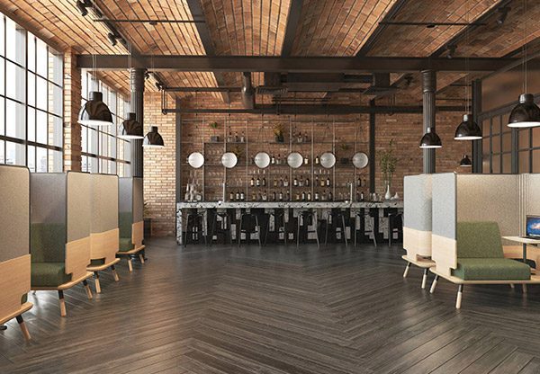 Die aus recycelten Materialien (PET und Filz) hergestellte Einfassung von Peacework dämpft Außengeräusche und steuert den Nachhall des Schalls, so dass eine ruhige Zone ohne Ablenkung geschaffen wird.