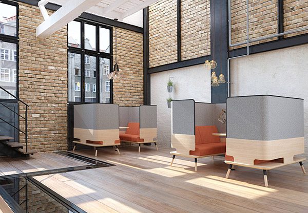 Das Peacework-Sofa von Wini wurde entwickelt, um seine Benutzer in einen Raum der Ruhe einzutauchen, indem es akustische und visuelle Privatsphäre für die Konzentration bietet.
