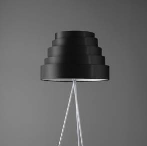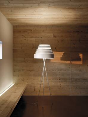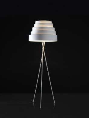 Stehleuchte mit wabenförmigem Wabenschirm in weiß oder schwarz. Dreibeinstativ aus weiß lackiertem Metall. Leuchtmittel: Leuchtstofflampen 1 x 27W oder LED 1 x 16W