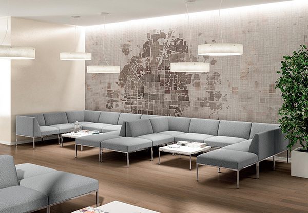 Astro Couch ist ein eleganter und modularer Satz von Sesseln und Zubehörmodulen für elegante Wartezimmer, Hotellobbys und trendige Clubs.